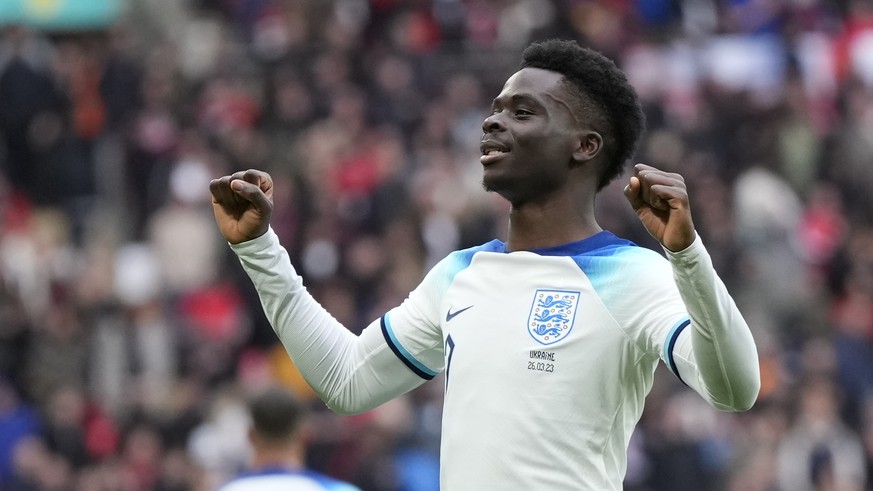 È stato coinvolto in entrambi i gol dell’Inghilterra: Bukayo Saka ha segnato un gol e un assist contro l’Ucraina.Immagine: Trapezio