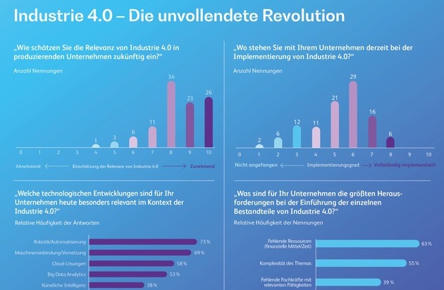 La Quarta Rivoluzione Industriale si è fermata, ma le sue visioni e idee sono ancora vive. Ciò è dimostrato dall'attuale sondaggio condotto da BearingPoint e dall'Università di Scienze Applicate di Monaco tra oltre 100 professionisti e manager del settore manifatturiero. Quasi il 96% vede la crescente importanza dell’Industria 4.0 nella produzione. Oltre l’81% delle aziende prevede di investire nell’Industria 4.0 nei prossimi anni. Il clamore attorno al termine “Industria 4.0” potrebbe iniziare a placarsi, poiché la digitalizzazione della produzione e della logistica, nonché le relative tecnologie, stanno diventando sempre più importanti.